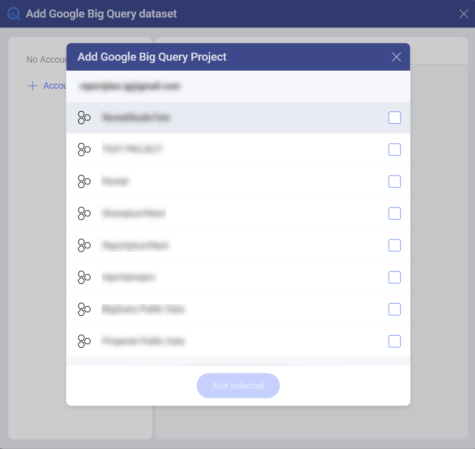 Once you've added a Google account, you will have access to your BigQuery datasets. To start using them for your visualizations, you need to: