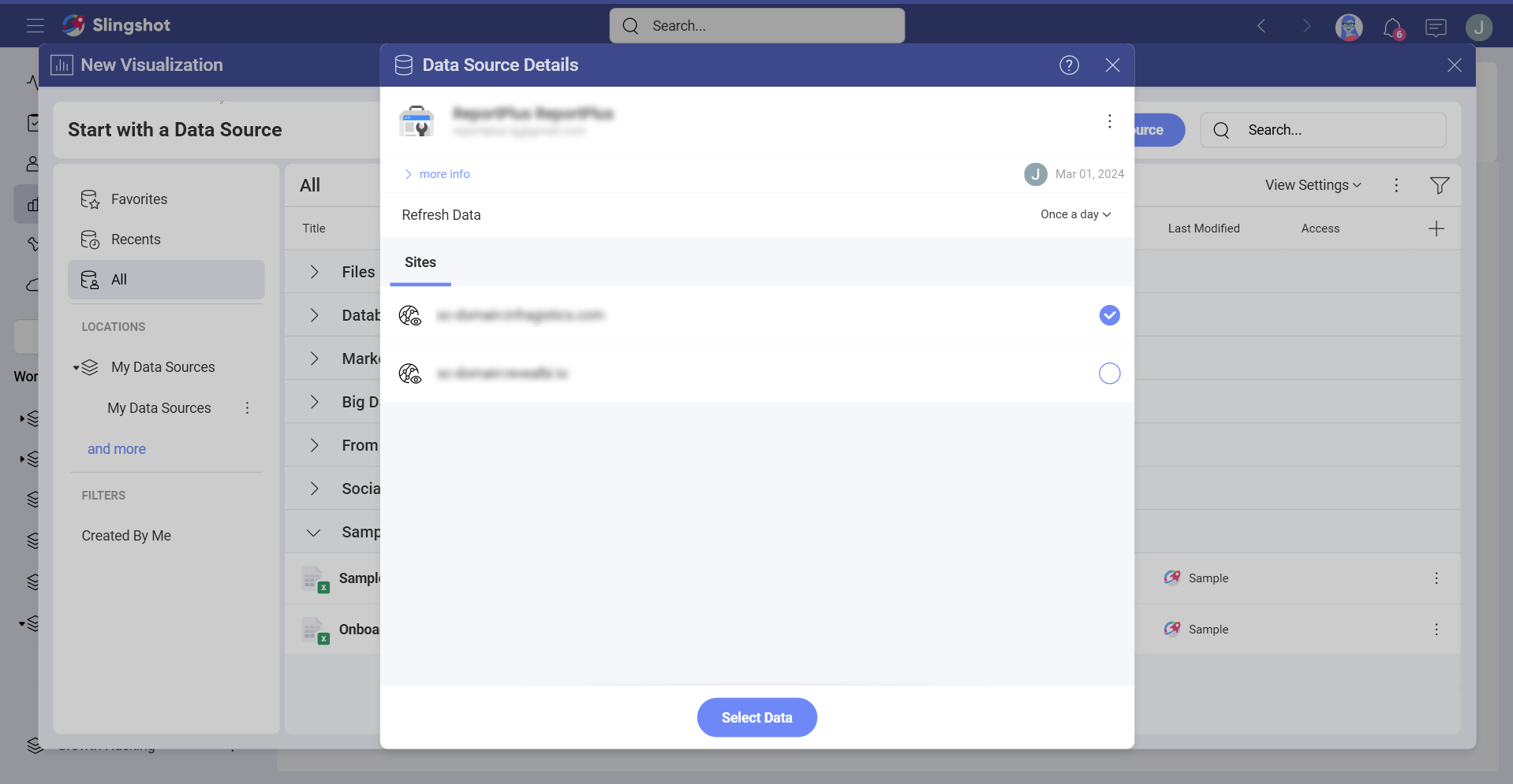 Choose the sites you want to use for your dashboard and then click/tap on Select Data.