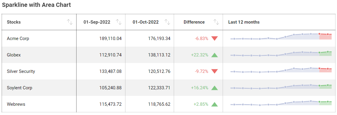 Sparkline charts are meant to display trends and their progression in a given date range. They are particular useful, like OHLC and Candlestick charts, for financial scenarios and stock movement analysis. Sparklines display line charts within a grid cell and require: