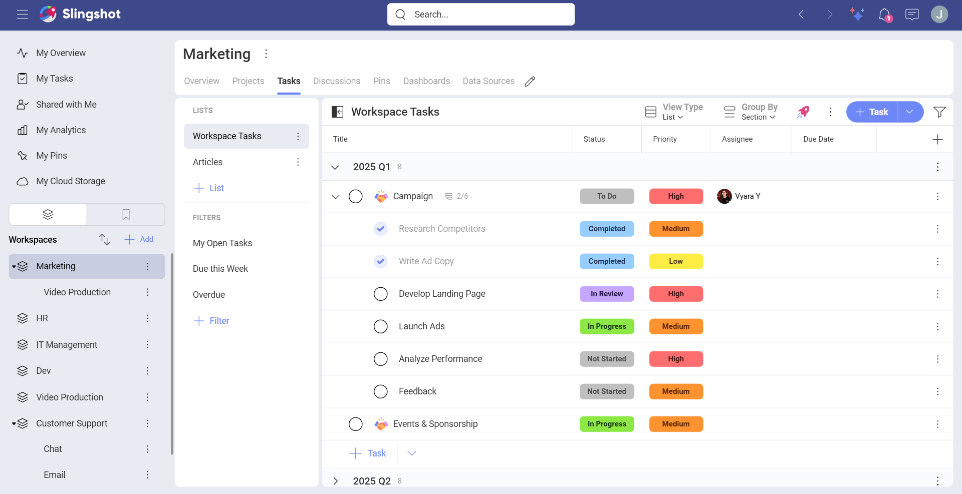 [!Note] Subtasks and their parent task can have different values for the Status and the Priority field.